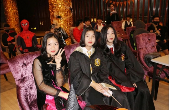 Audrey与好友邱,Apple参加校园万圣节派对