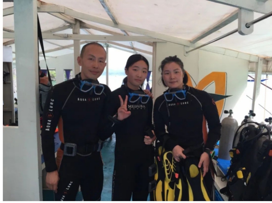 一家三口在菲律宾考取潜水证