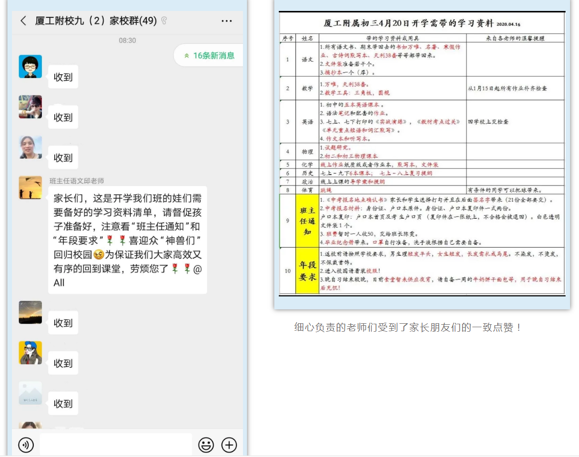 细心负责的老师们受到了家长朋友们的一致点赞!
