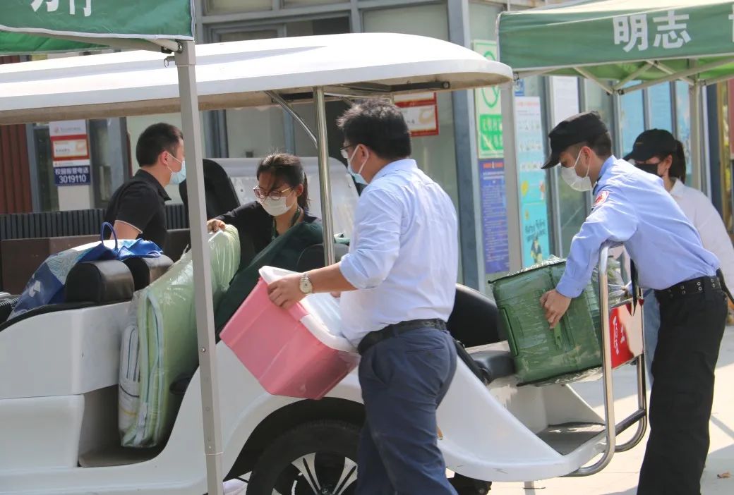 4月19日学生返校,老师们在校门口迎接和搬运行李,一幅幅温馨的画面,让返校的学子们拥有一种归家般的温暖与安心。