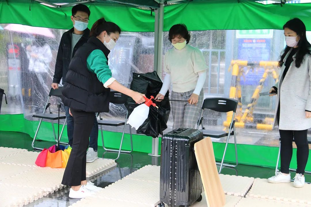 接过你的行李,为团聚“狂欢”!“狂欢”前,要全力保你“平安”,保校园“安康”。入校行李消杀,安全细节一个都不放过;行李提放,专人看管,专车运送,井然有序。
