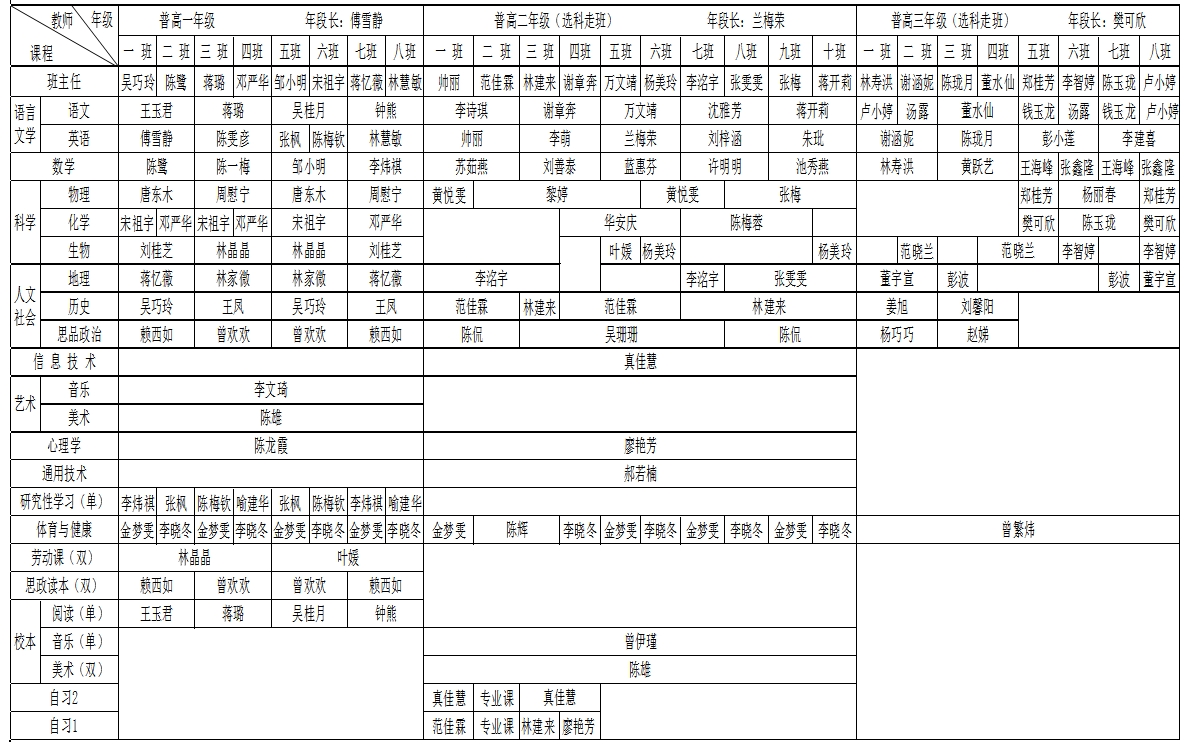 2023-2024学年第一学期高中部任课教师一览表