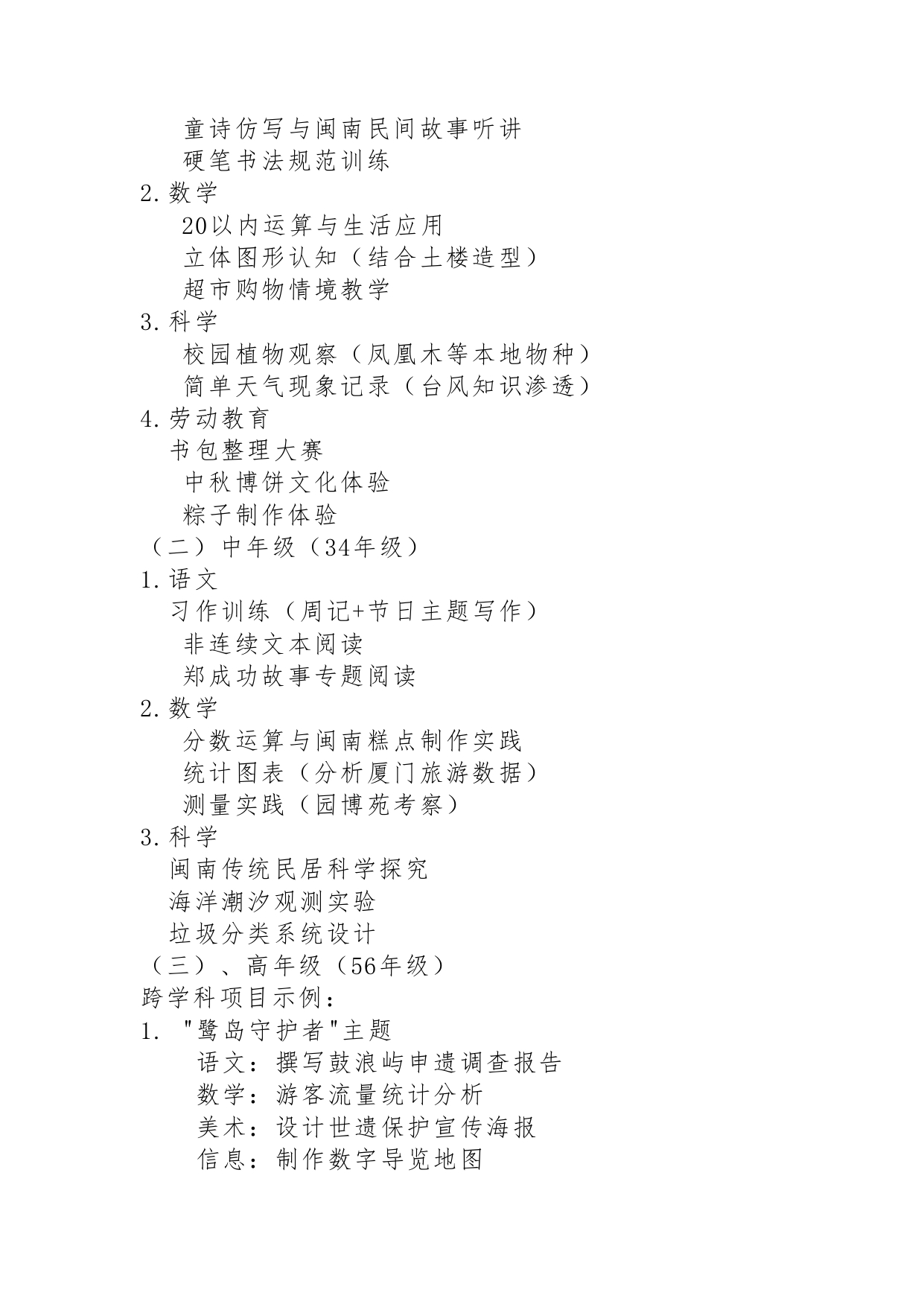 厦门工学院附属学校小学部六年教学计划