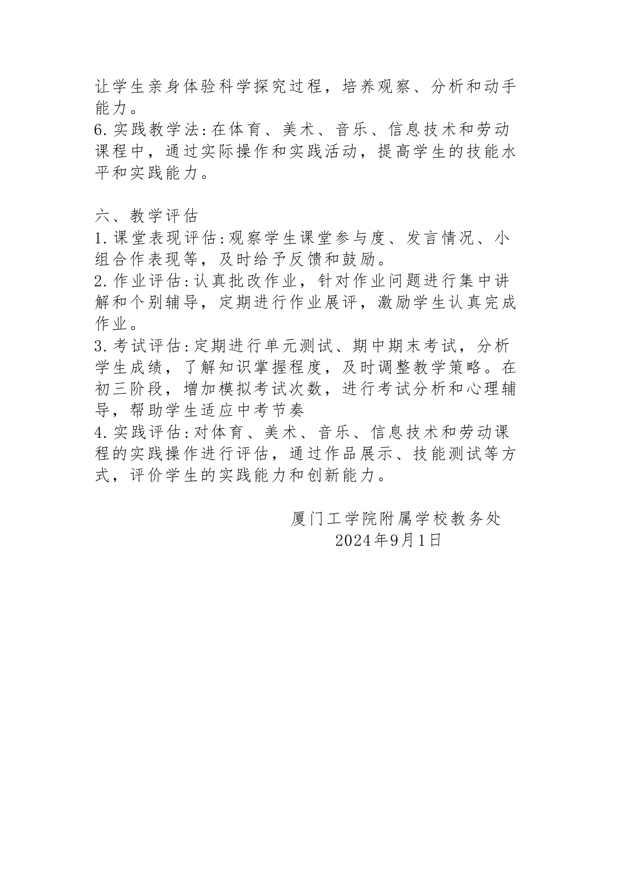 厦门工学院附属学校小学初中部2024年教学计划执行情况