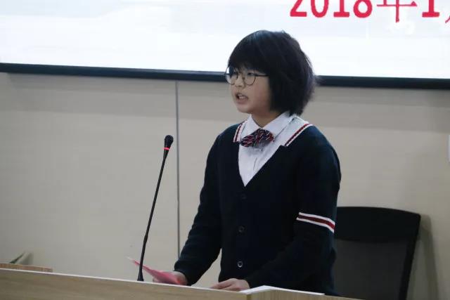 “我要一步一步往上爬,等待阳光静静看着它的脸;小小的天有大大的梦想,我有属于我的天”……伴随着孩子们稚嫩而又坚定的歌声,2018年1月26日下午15:00,本校初中部2018-2017学年第一学期闭学式在一楼报告厅隆重拉开序幕,教务处王玉君老师主持了本次会议。