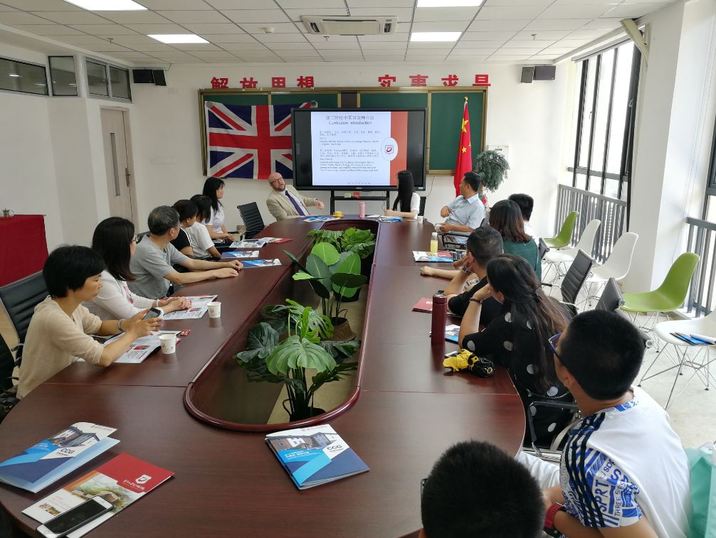 2018年5月26日,厦门工学院附属学校迎来了校园开放日!国际部中英班第一届招生宣讲说明会在我校办公大楼四层大会议室顺利召开。场面十分火热,到场家长与学生络绎不绝。我校请来了英方专家代表Mark先生,在会场给家长与学生进行了中英班项目的详尽介绍。我校总副校长黄亮生校长也在会场与到会家长做互动咨询。家长们听得非常认真,且根据孩子们的情况时时提问。会后家长们还与在场老师进行了深入的沟通,并对学校中英班项目有了更透彻的了解。