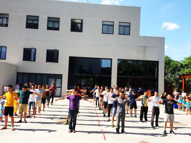 广播体操的音乐响起,爸爸们仿佛回到了学生时代