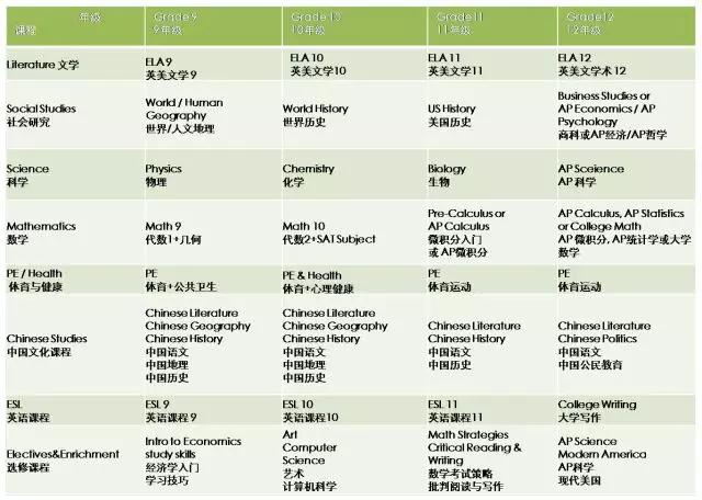 答:VIA课程汇集东方、西方的价值理念,提供一个具有国际标准的大学预科教育。课程设置结合美方课程与中方课程,美方课程是建立在美国先进的课程体系——美国公共核心标准-Common Core Standards与New Generation Science之上的,以佛蒙特州高中教育体系为框架的原汁原味的美国课程和美国教育环境。每年有四门必修课程:文学、数学、自然科学(生物,化学,物理)、社会科学(美国历史,世界史,世界地理)。中方课程为国家教委规定的课程:语文, 中国地理,中国历史,政治。除了以上主课以外,根据学生升学计划与个人兴趣,学校会提供相应的选修课程。