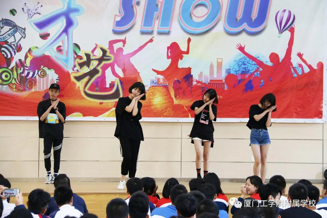 一开场就显示出高能,高一(2)班的郑嘉豪、黄艺萍、卓芃、刘智妍带来的开场舞为高中部大课间才艺展示拉开序幕。女生柔美,男生刚健,刚柔并济,尽显个性魅力。