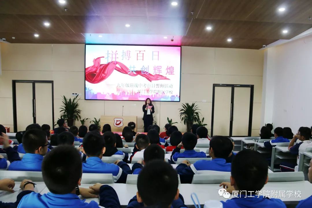 为了激发九年级全体师生备战中考的斗志,点燃学生奋发努力学习的激情,3月13日下午,在距离2019年中考100天的日子里,厦门工学院附属学校初中部师生齐聚图远楼一楼报告厅,为即将参加中考的2019届学生举行隆重的百日誓师大会。