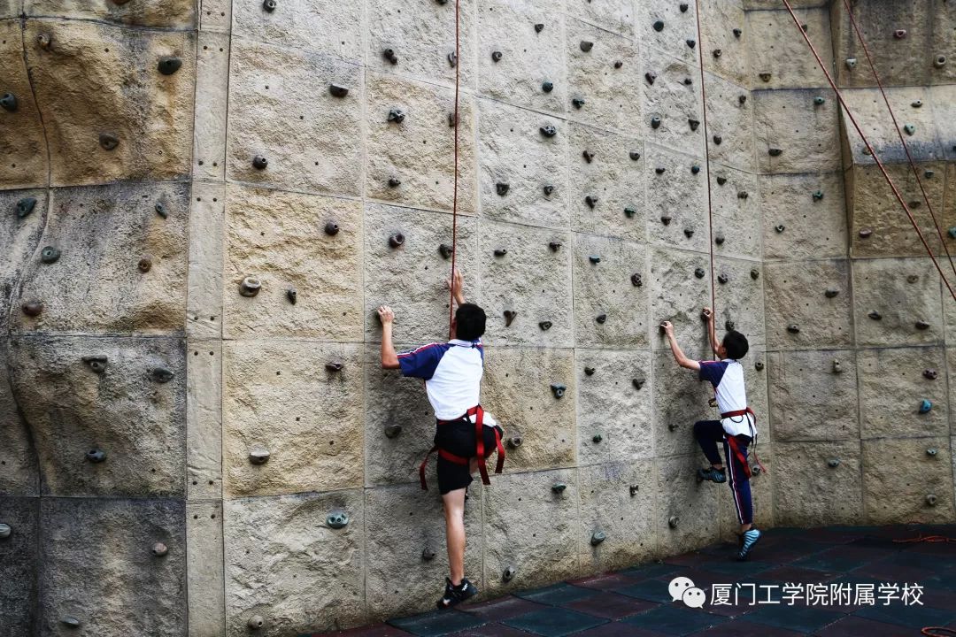 整个攀岩过程,不能分心想其它的事情,更不能分心去做其它的事情,把所有的精力都集中在脚下的岩块上,注意自己身体的每一个细节,这样有利于培养同学们对事物的专注力。