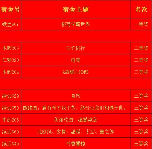 红榜公布获奖宿舍