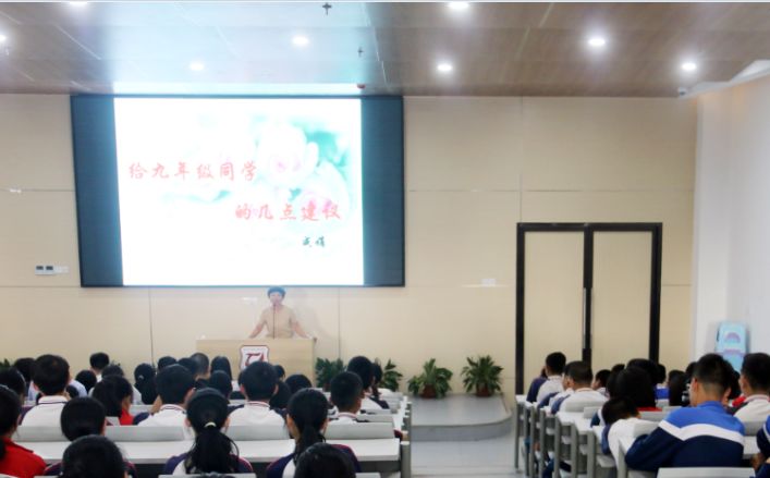九年级学生代表陈弈桦以“中国女排精神”为傲,鼓励大家勤积跬步终至千里
