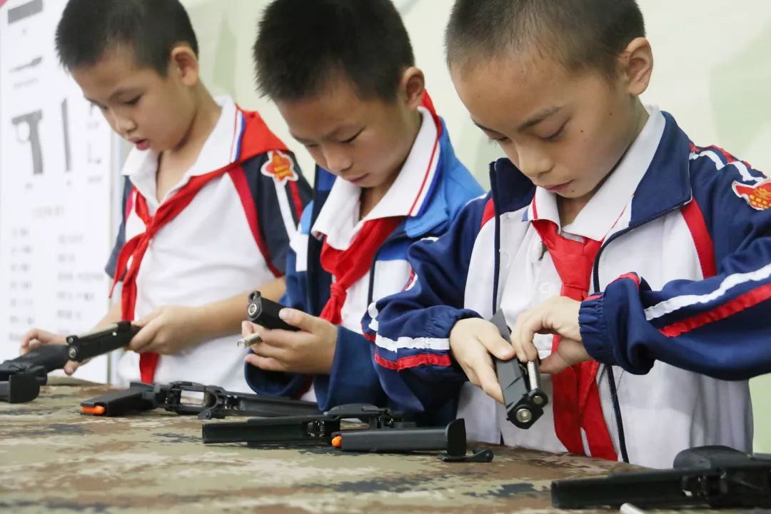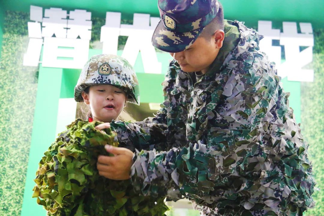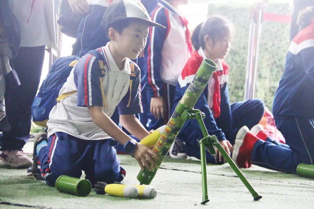 一下车,孩子们就被各种坦克、战斗机模型所吸引。教官介绍、演示92式手枪分解结合 ,同学们现场操作;穿上吉利服伪装,体验潜伏狙击;登坐登陆艇,感受抢滩登陆……同学们在习得军事科普知识的同时也收获了一次良好的军事互动体验。